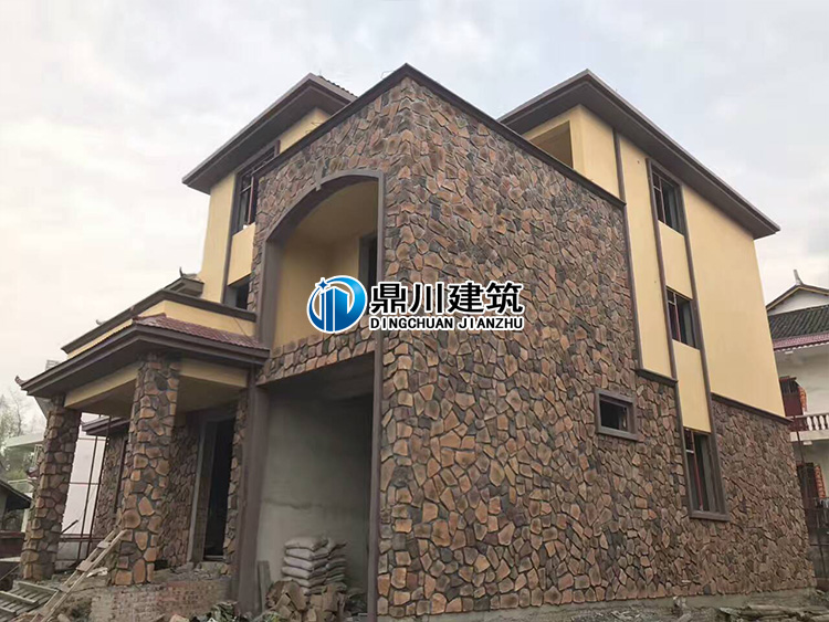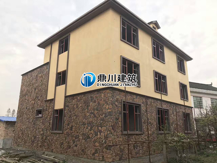 就此款新農村三層帶露臺房屋設計圖紙自建房案例實拍來說:一層褐色的文化石將房子裝點的很精致,與二層的淺黃色的涂料層次分開來,既緩和了文化石的厚重感又讓房子更顯亮麗。整體外墻和造型比較簡單大方,給人以美的愉悅。