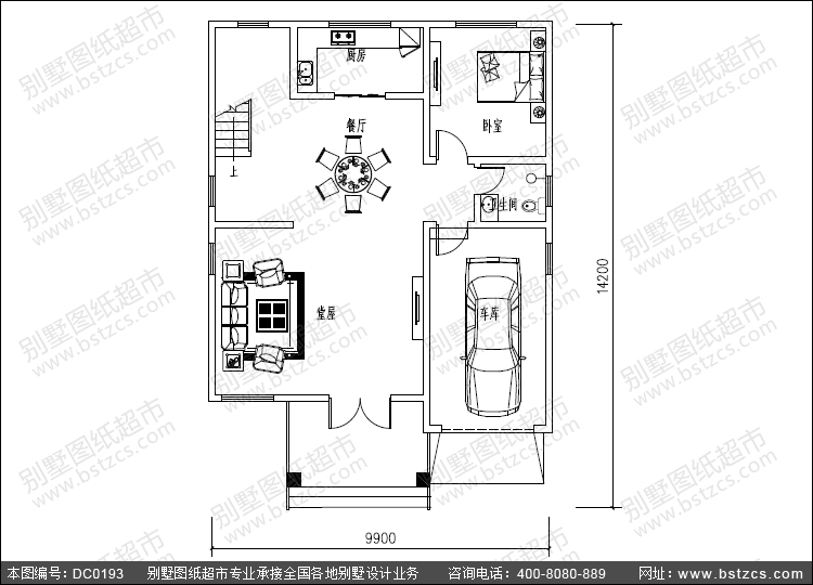 一 層:客廳、臥室、廚房、餐廳、衛生間、車庫