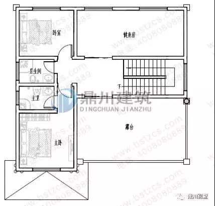 三 層:健身房、臥室(附衛生間)、臥室、衛生間、露臺