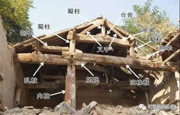 用密排的人字形椽條制成的支架,支在縱向的承重墻上,上面鋪木望板或直接釘掛瓦條。椽架的一般間距為 40~120厘米,椽架的人字形椽條之間須有橫向拉桿。