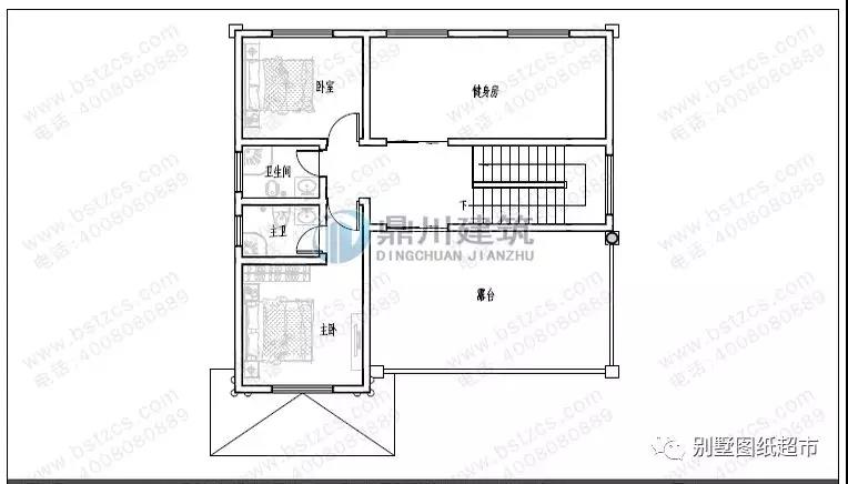 三層:健身房、臥室(附衛生間)、臥室、衛生間、露臺,大露臺滿足晾曬和休閑的需求。