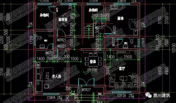 一 層:堂屋、客廳、老人房(附衛生間)、麻將室(附雜物間)、雜物間、廚房(兼餐廳)、衛生間