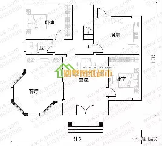 一 層: 堂屋、客廳、2臥室、廚房(兼餐廳)、衛生間