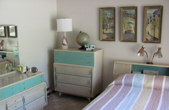 7、多數人雖然喜歡有創意的燈具設計,但出于保守的整體臥室風格考慮,最終依然會選擇中規中矩的燈具。這個八十年代風格的臥室搭配一個老款射燈,就是個不錯的選擇,簡單的外形和整潔的臥室相得益彰,暖暖的燈光讓臥室充滿溫馨。