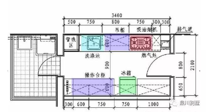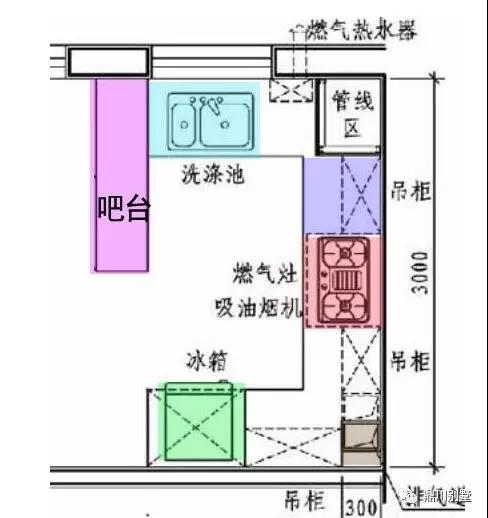 2、預(yù)留的廚房空間尺寸和形狀不同,具體布置形式也不同,實際布置時應(yīng)根據(jù)預(yù)留的空間來選擇。