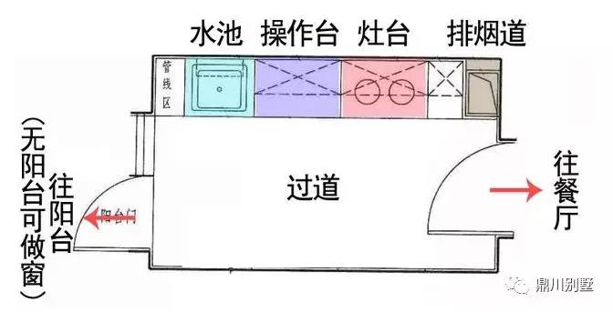 顧名思義,將灶臺、水槽、抽油煙機等廚房工作區(qū)布置在一邊。