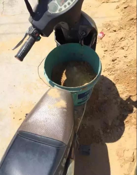 開始鋪沙,因為沒有專門搞建筑的那種勞動車,所以我只能這樣一小桶一小桶放電瓶車上裝運,我也記不得弄了多少估計在25桶左右。