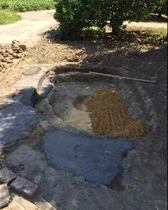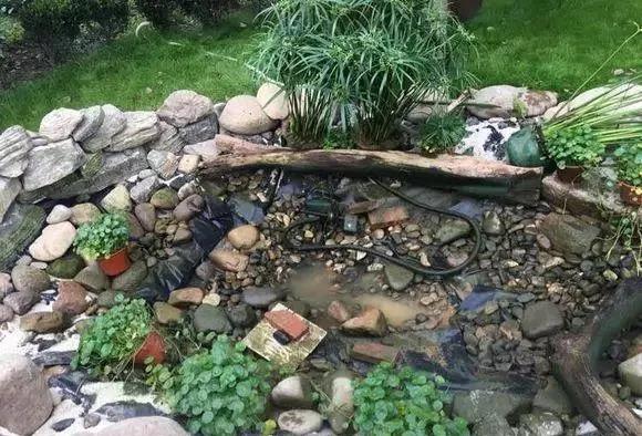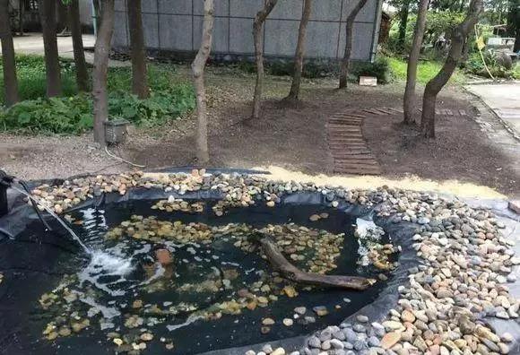 我把池塘的水抽干了,打算把池塘底部石頭重新弄弄好,魚兒全部放旁邊的大水缸里了。