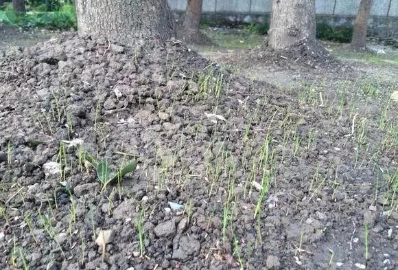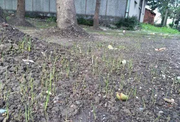 后來驚人的發現,前兩天撒的草種竟然神奇地長出來了, 遠遠看上去已經能看到小片綠色, 非常欣慰, 整個一天都感覺棒棒噠。