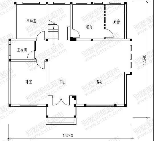 一 層: 門廳、客廳、臥室、活動室、廚房、餐廳、衛(wèi)生間