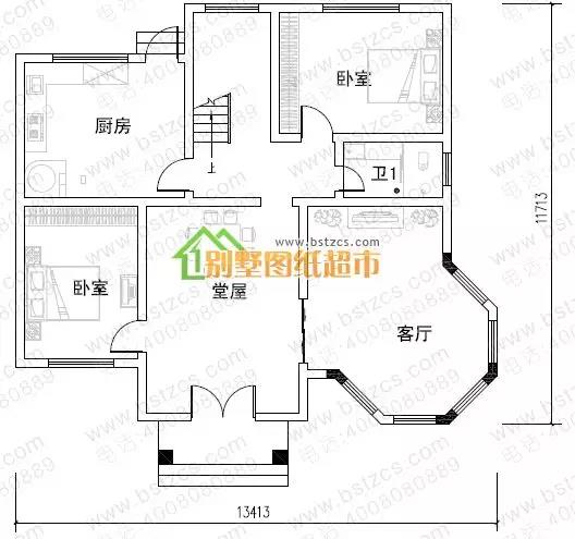 一 層:堂屋、客廳、2臥室、廚房(兼餐廳)、衛生間