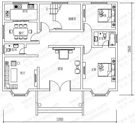 一 層:堂屋、客廳、臥室、廚房、餐廳、儲藏室、衛生間
