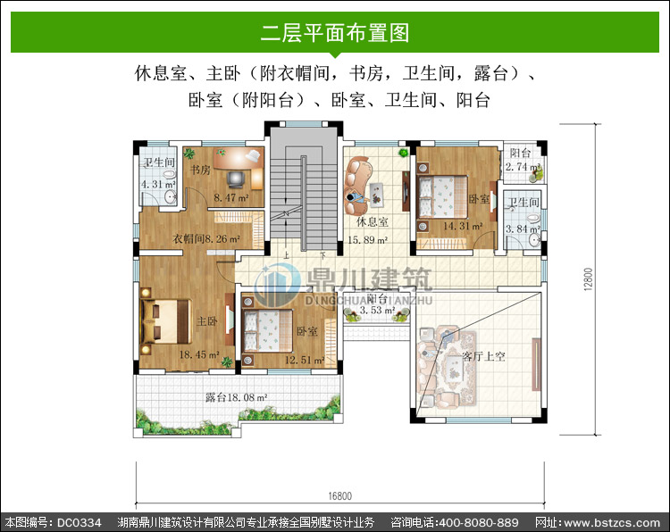 | 二 層: | 休息室、主臥(附衣帽間,書房,衛生間,露臺)、臥室(附陽臺)、臥室、衛生間、陽臺 | |||