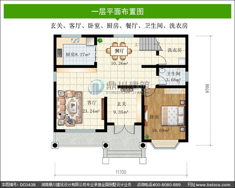 | 一 層: | 玄關、客廳、臥室、廚房、餐廳、衛生間、洗衣房 | |||